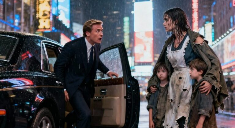 When the billionaire looked into the children’s eyes, everything around seemed to freeze, and even the pouring rain no longer mattered, because he felt a strange sense of recognition in their gazes.